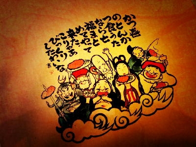 あっ、先日の休みに行った「かつ喜」の七福神です。とても好きな絵なんすよ。