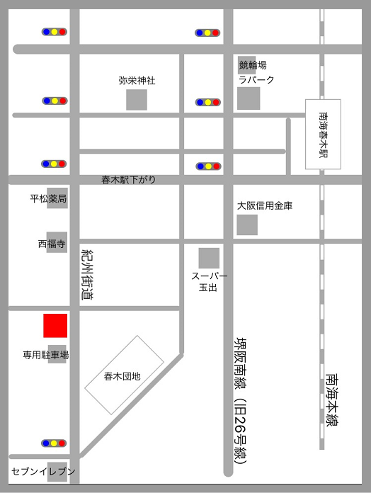 南海電鉄「春木駅」下車。徒歩10分。